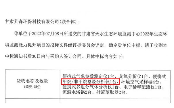 甘肅省天水生態(tài)環(huán)境監(jiān)測中心2022年生態(tài)環(huán)境監(jiān)測能力提升項(xiàng)目中標(biāo)公告