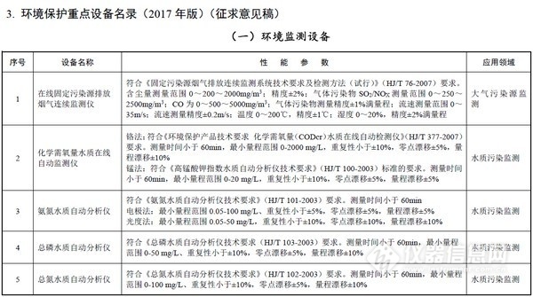 今年共有15類環境監測設備入選環境保護專用設備,相比2015年版名錄,化學需氧量水質在線自動監測儀、氨氮水質自動分析儀等13項儀器不變,新增了施工揚塵在線自動監測儀、揮發性有機氣體在線監測系統。名單如下: